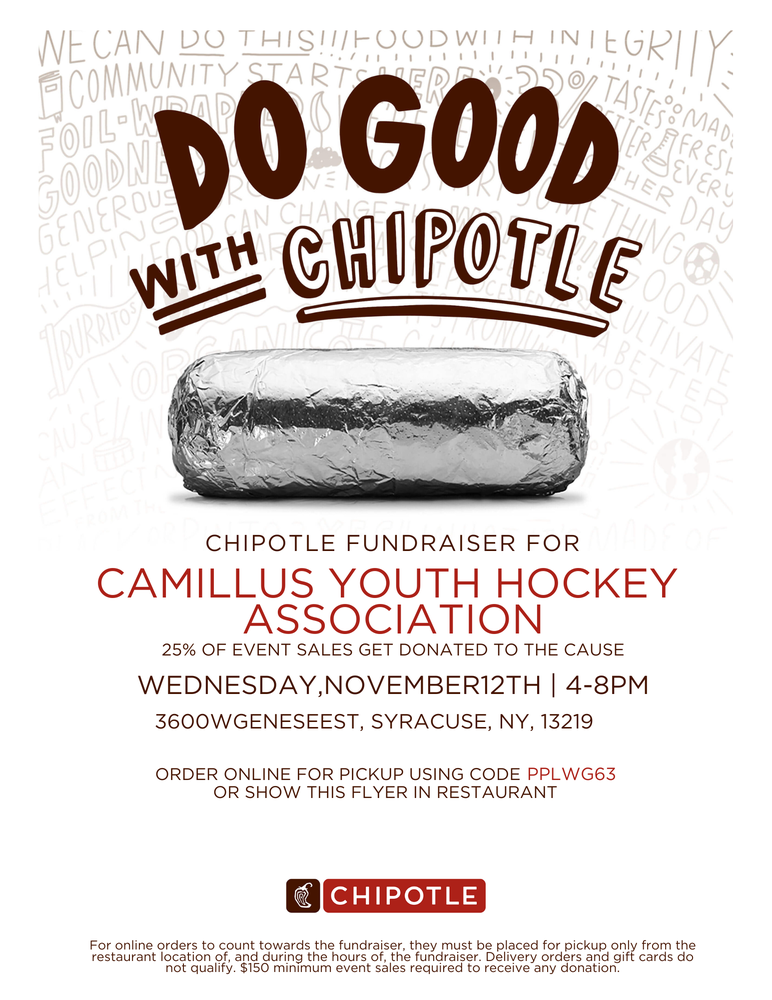 CHIPOLTE FUNDRAISER - 25% OF SALES COME BACK TO CYHA!!