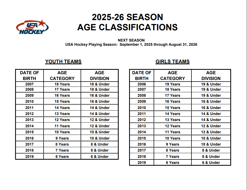 The CYHA program consists of teams in the Tyke, Mite, Squirt, Peewee, Bantam, Midget, and Girls divisions. There are also travel (competitive) teams in the Squirt (10U), Peewee (12U), and Bantam (14U) Division. Set forth below is a brief description of each division. Please note that the divisions are determined by the USA Hockey Age Classification.